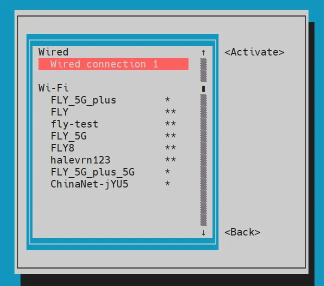1. 选择你需要连接的网络,回车输入WiFi密码在选择OK进行保存连接