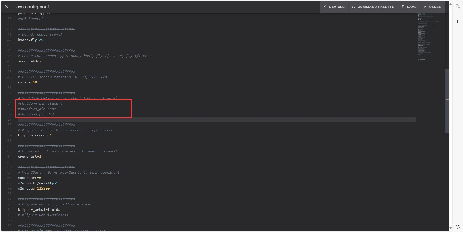 sys-config.conf文件,找到shutdown_pin_state与shutdown_pin=这两个配置 - 将这几个配置前面加