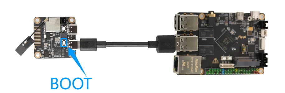 - 需要将AirClick的烧录口与上位机的USB口进行连接,请不要按着BOOT按钮否则无法搜索ID