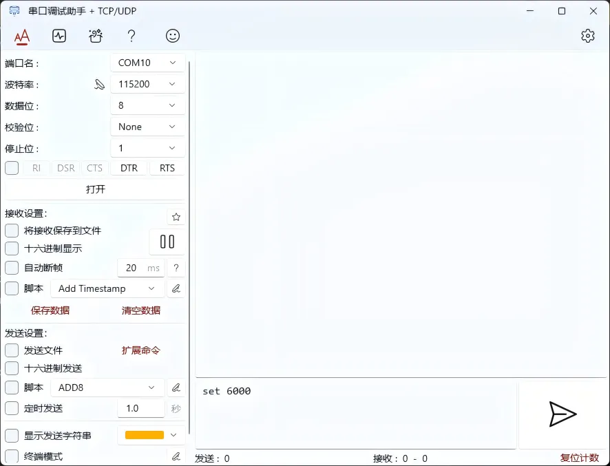 usb数据线连接模块跟电脑,打开串口工具助手,选择对应的端口号,波特率115200,点击连接。