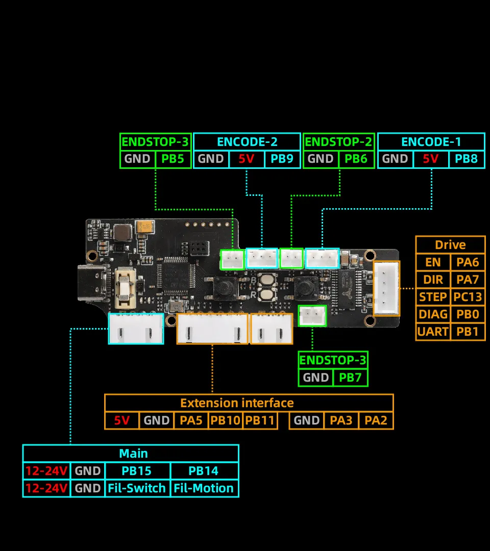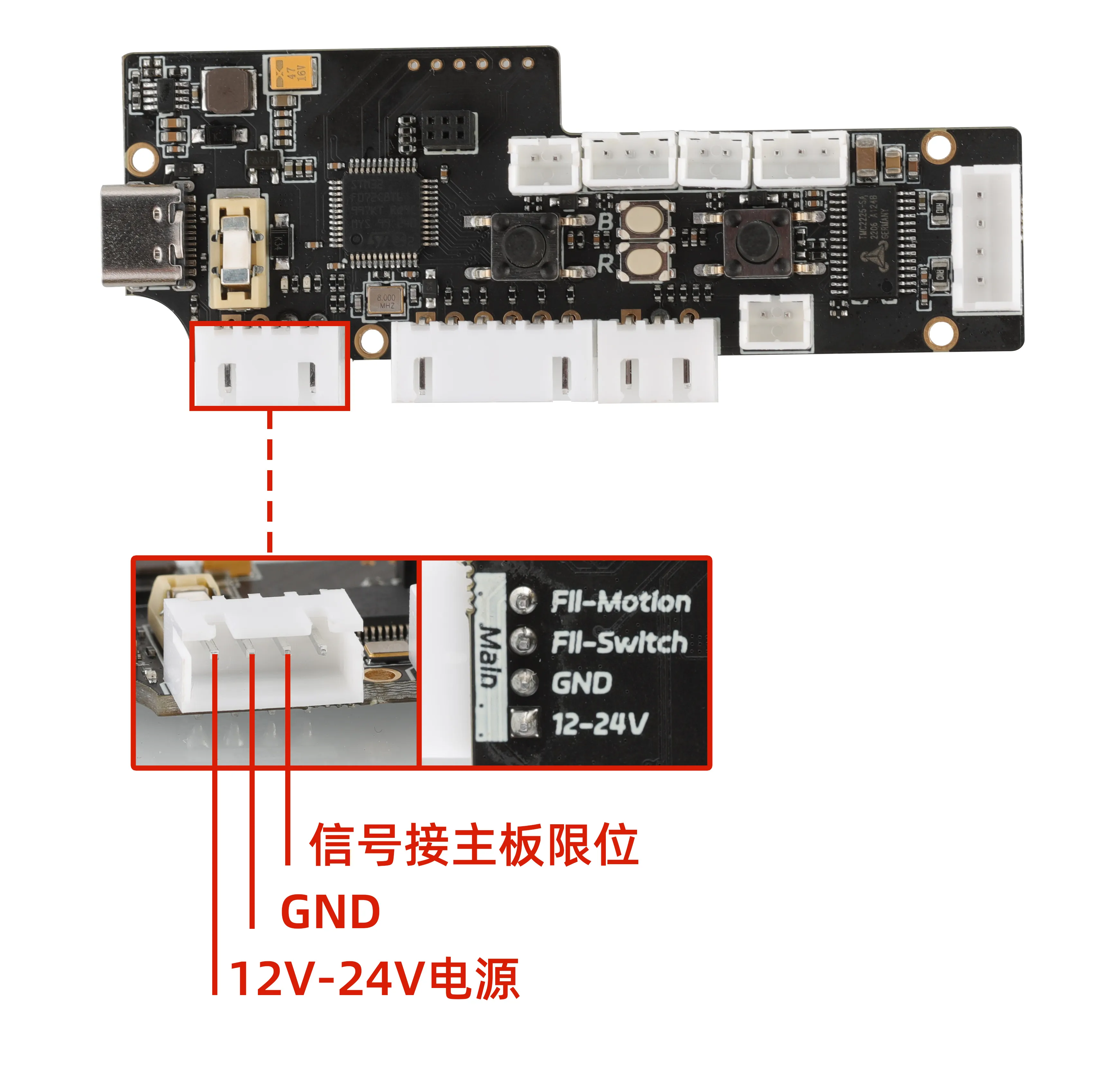 - 请注意使用需要将耗材接入后才可以使用功能,否则只能通过按钮控制电机运行