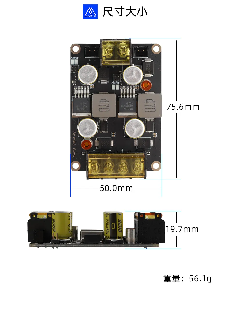 FLY-VoltUp Power该升压模块专为高压驱动设计,用户无需额外购买高压电源即可实现高压驱动,有助于在设计3D打印机时节省空间