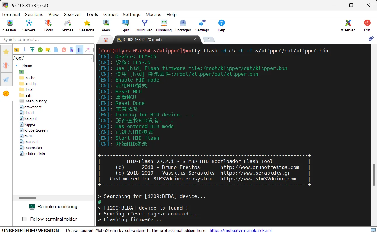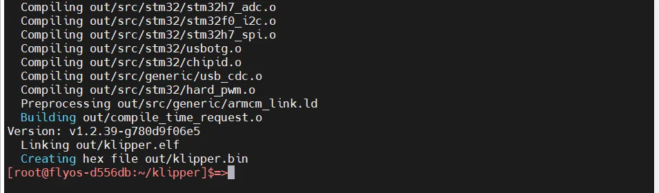fly-flash -d c5 -h -f ~/klipper/out/klipper.bin