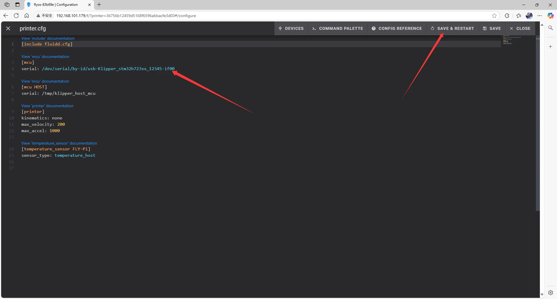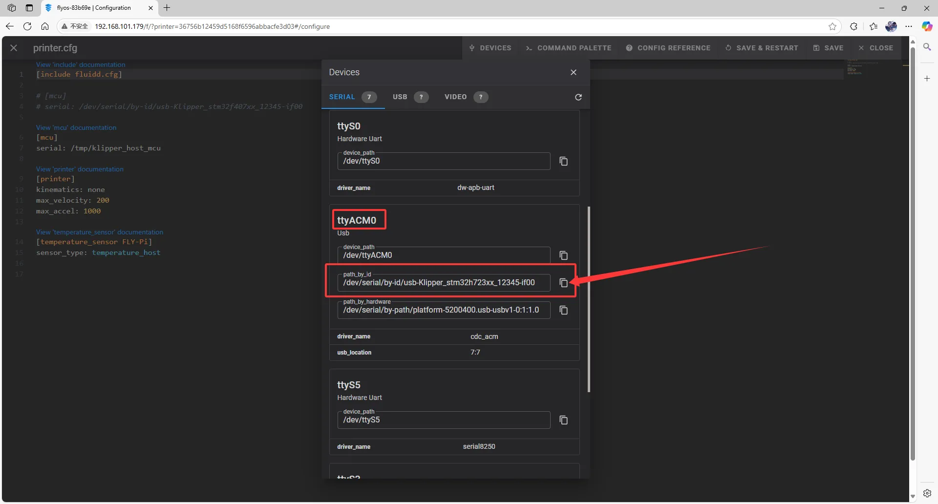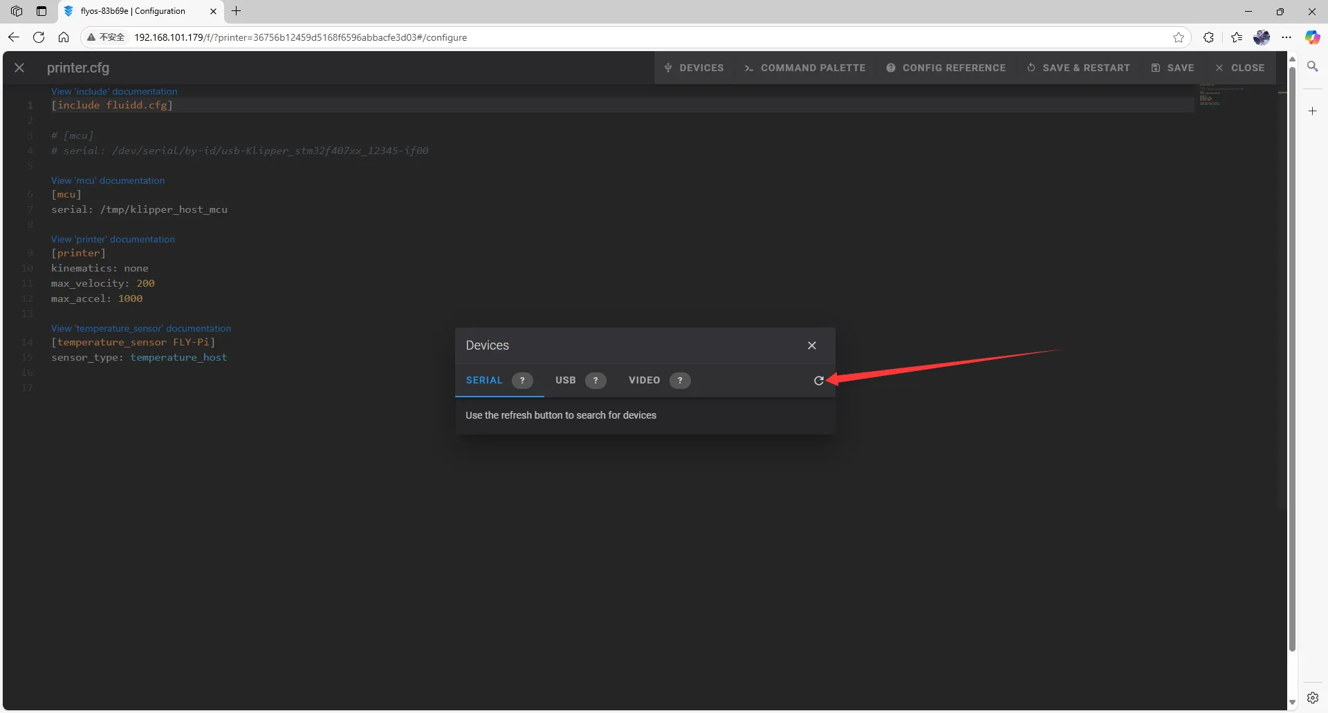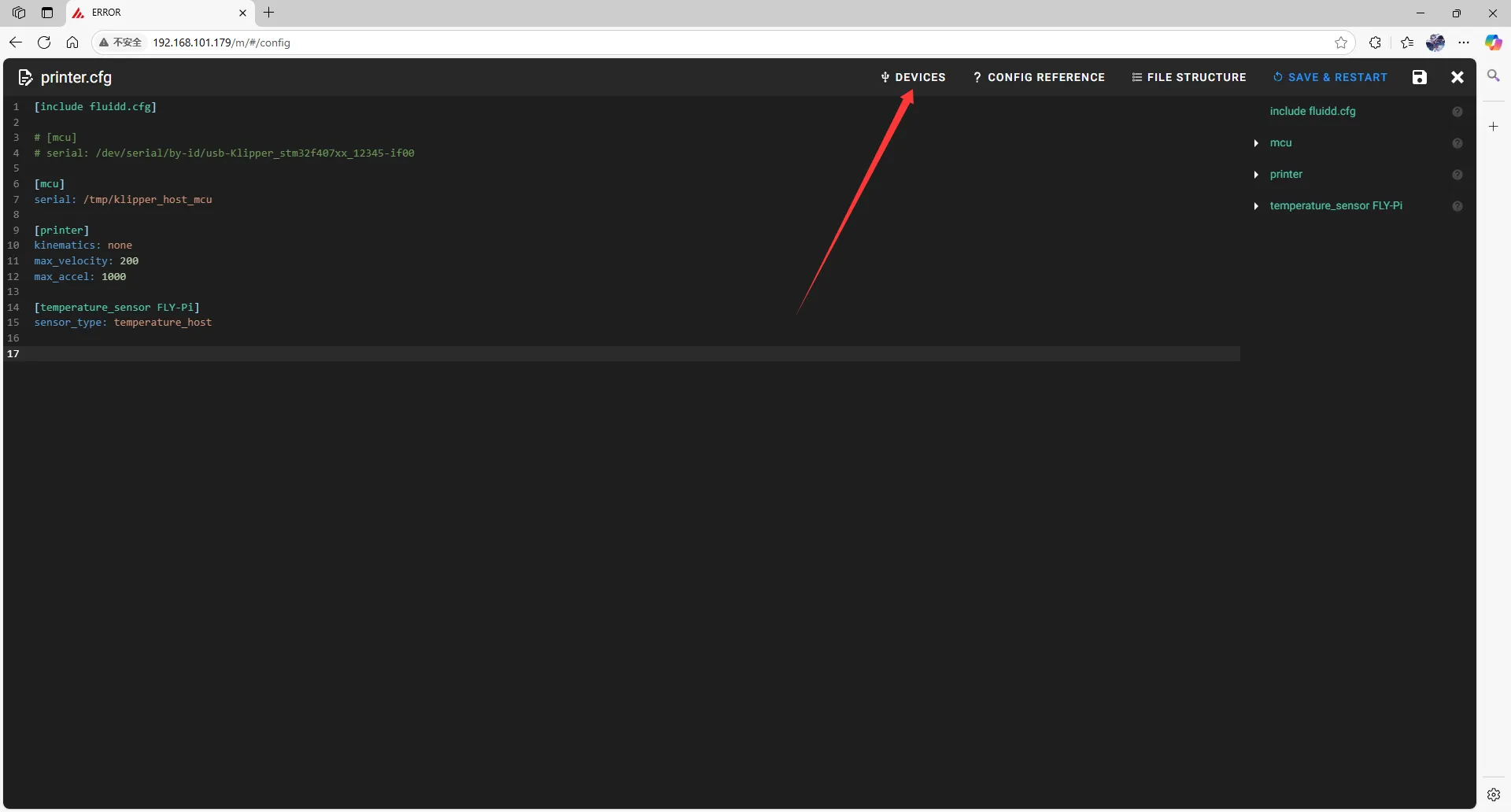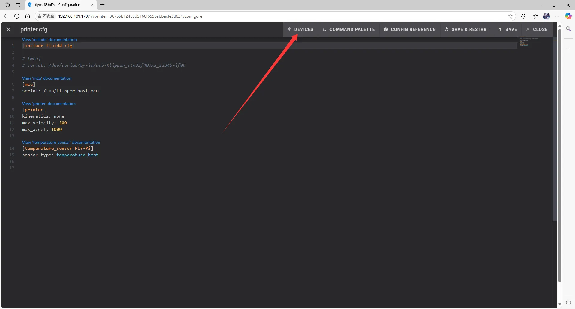 3.点击printer.cfg 进去后,在点击右上方的DEVICES
