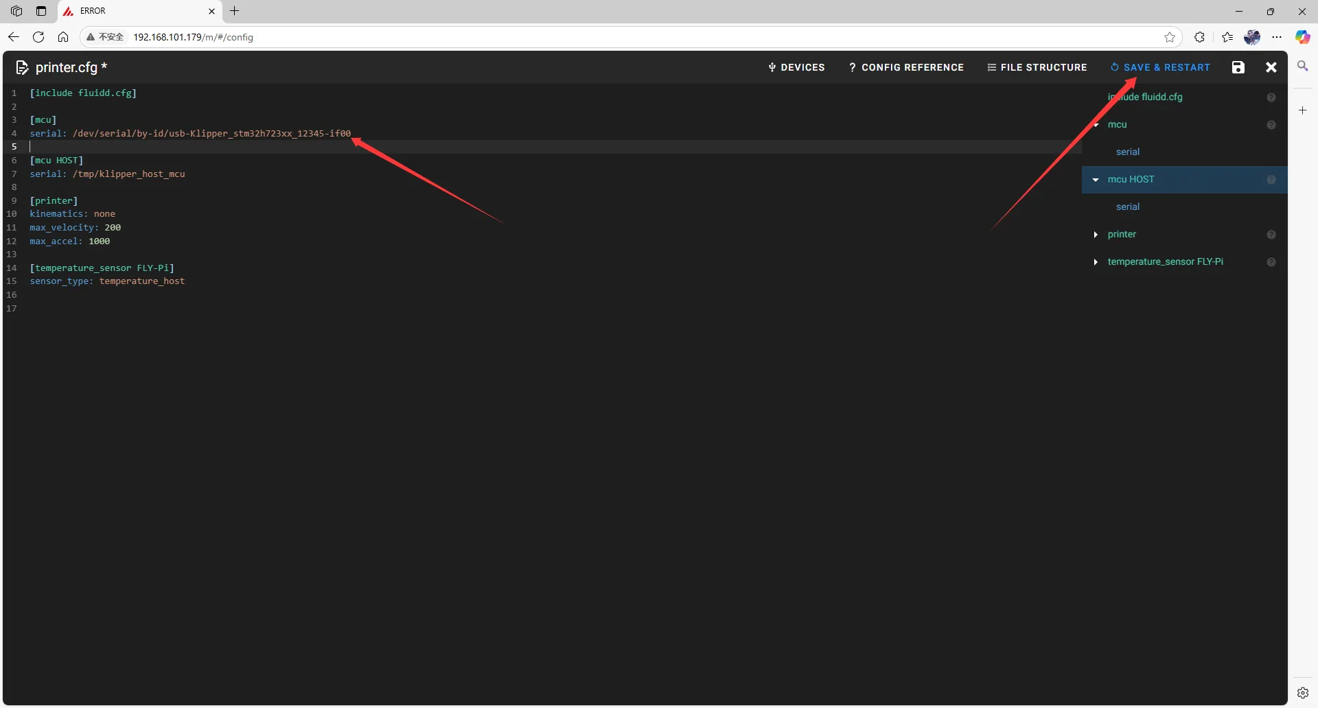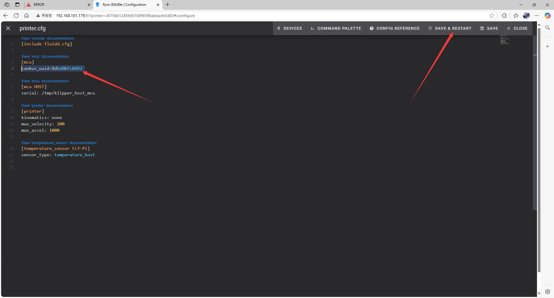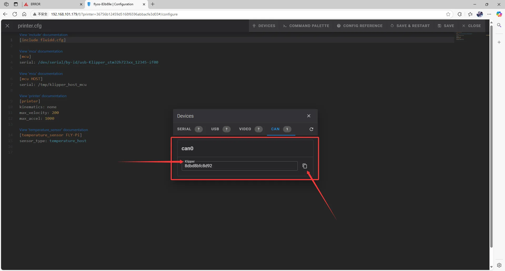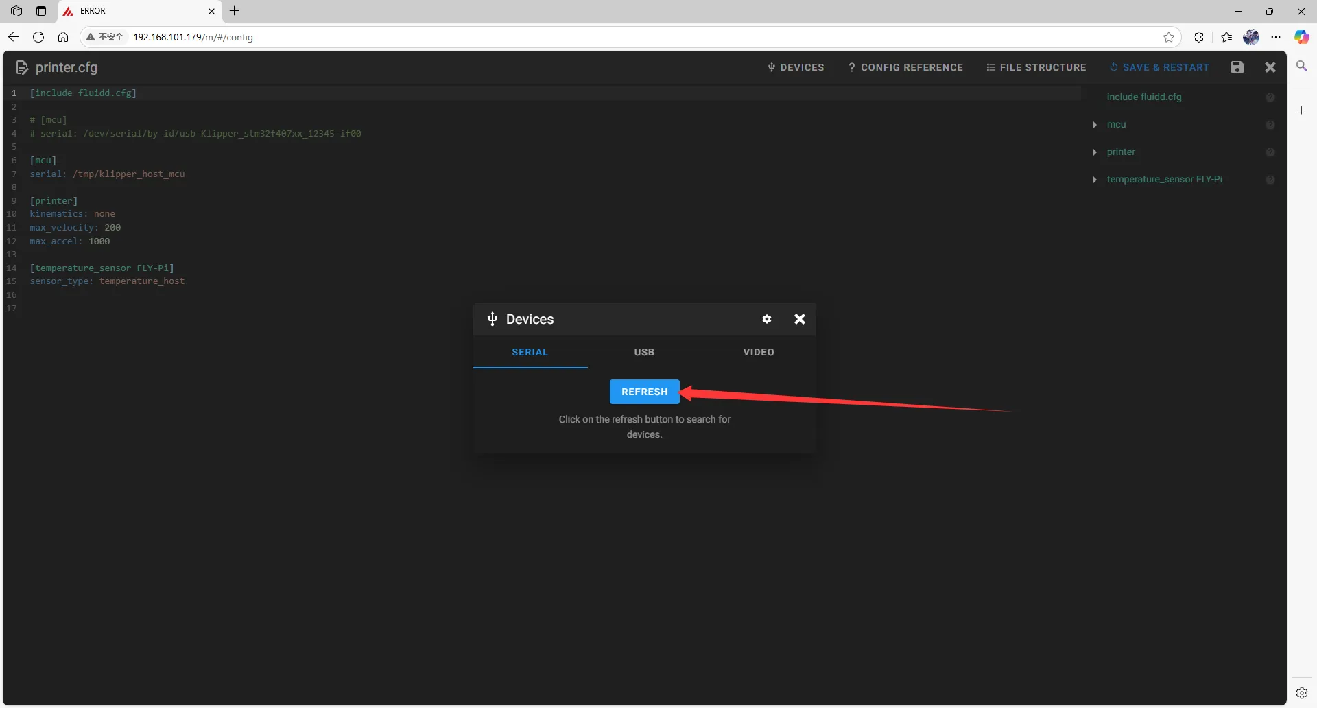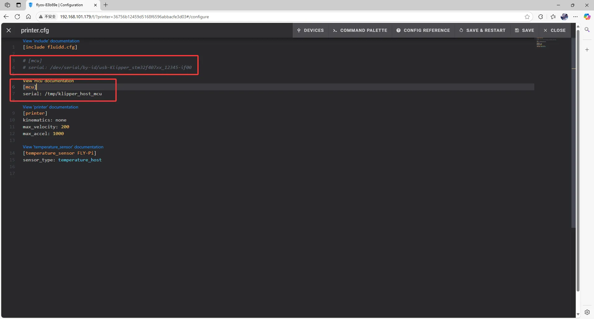 3.点击printer.cfg 进去后,在点击右上方的DEVICES