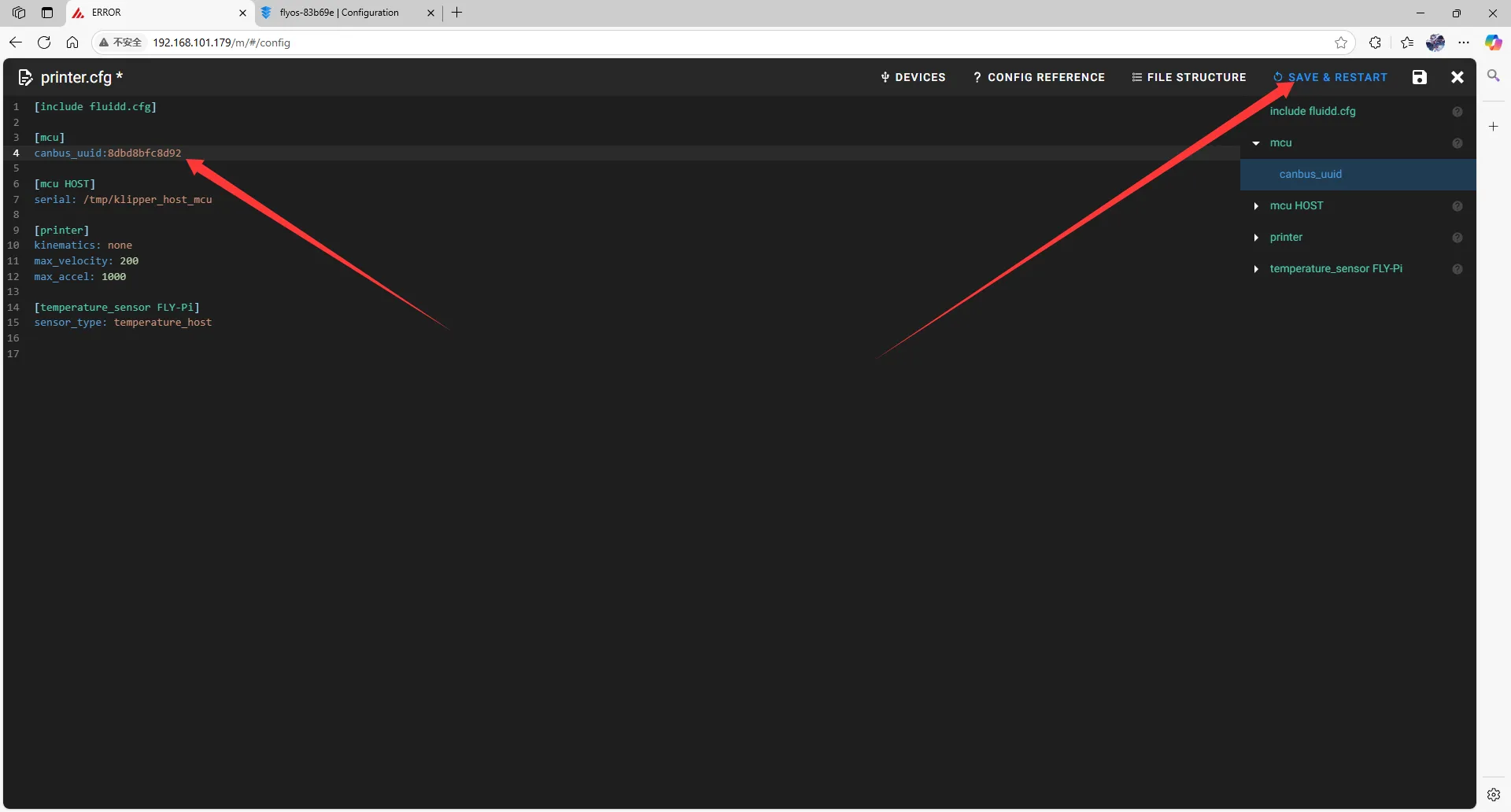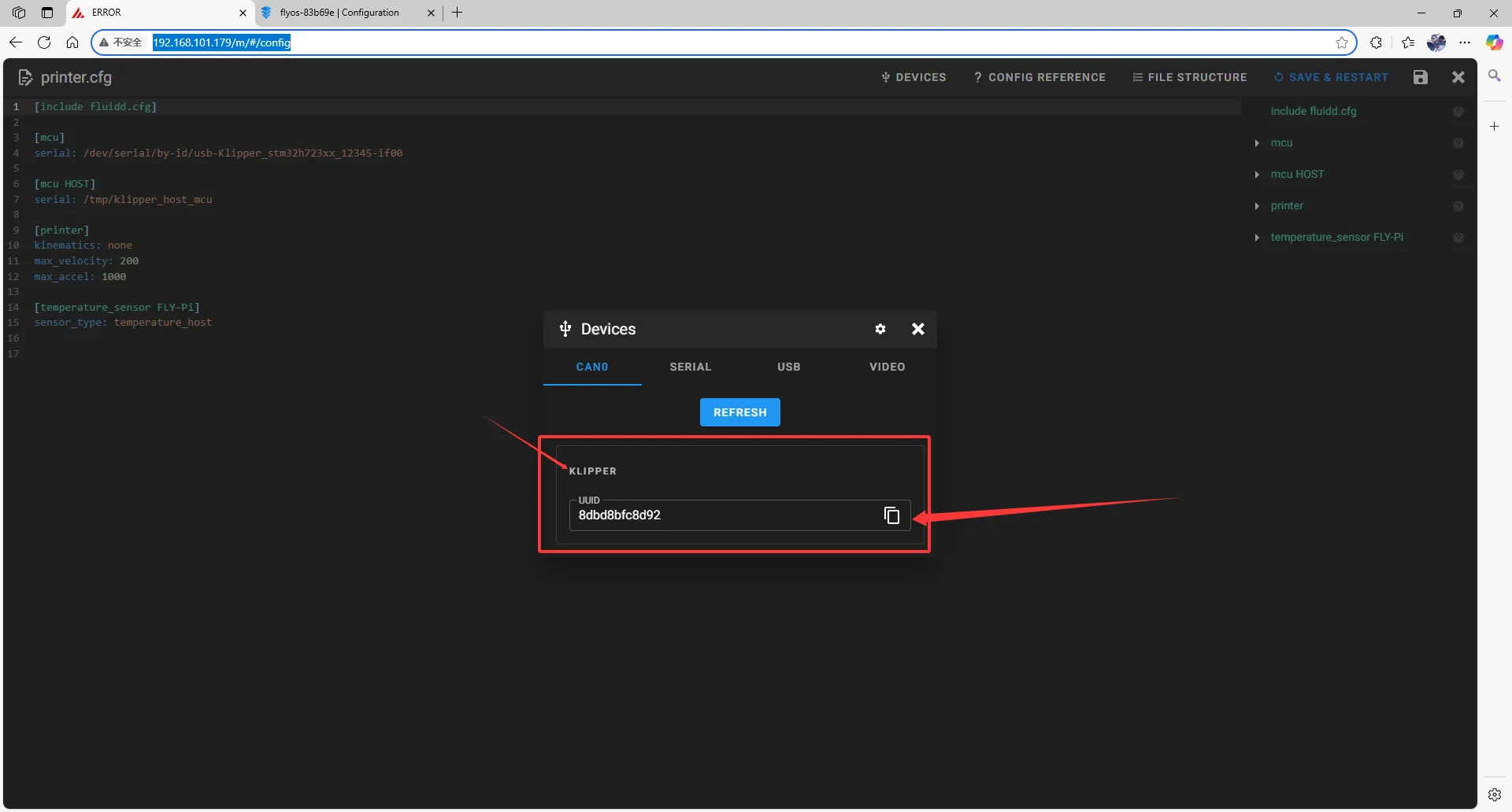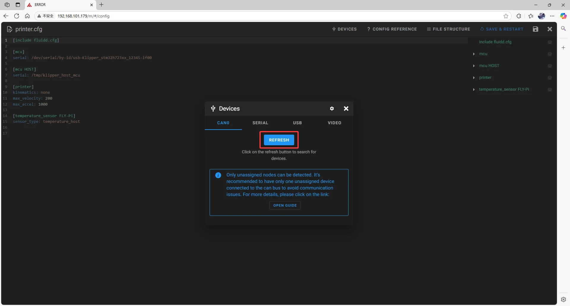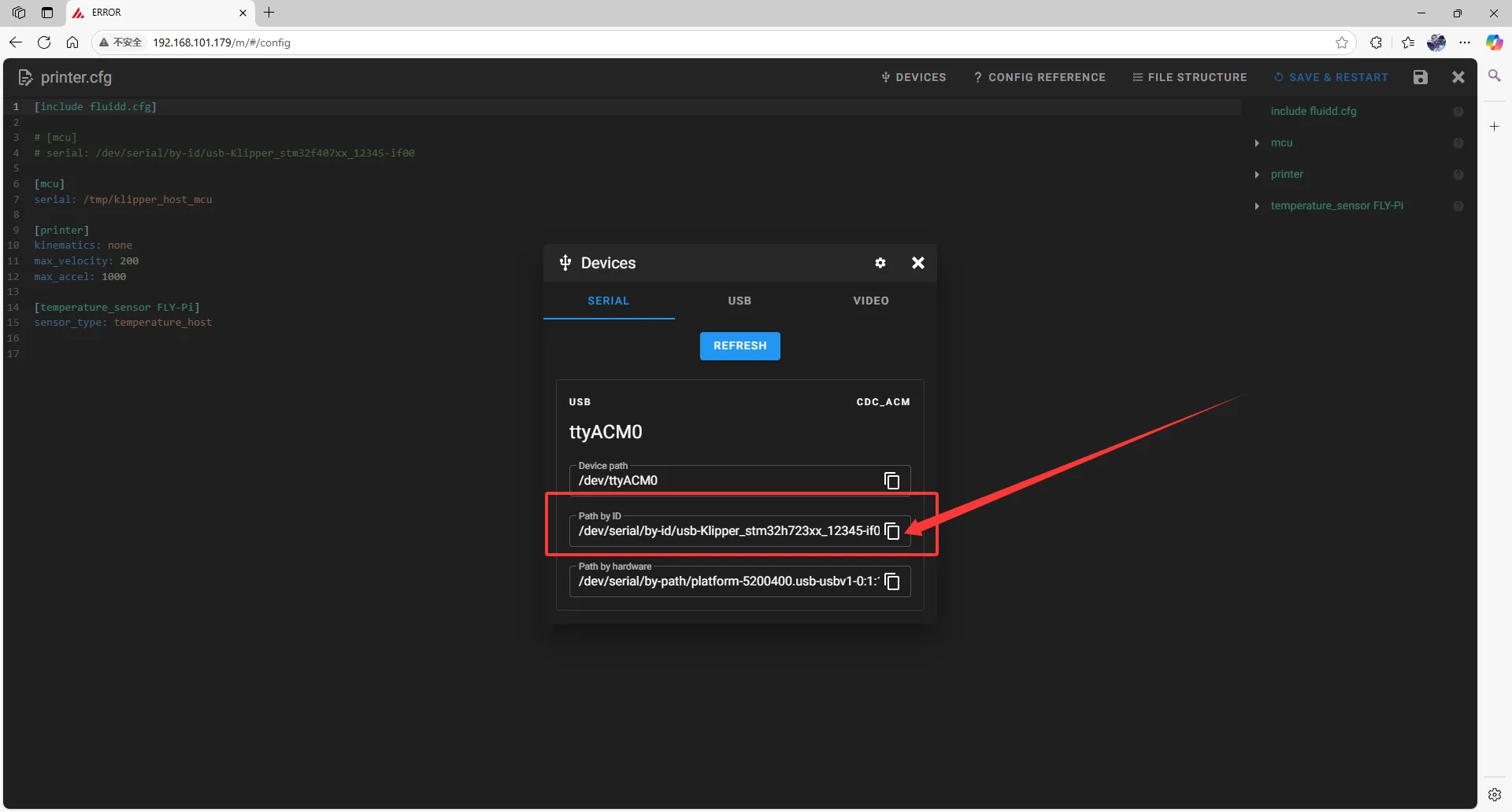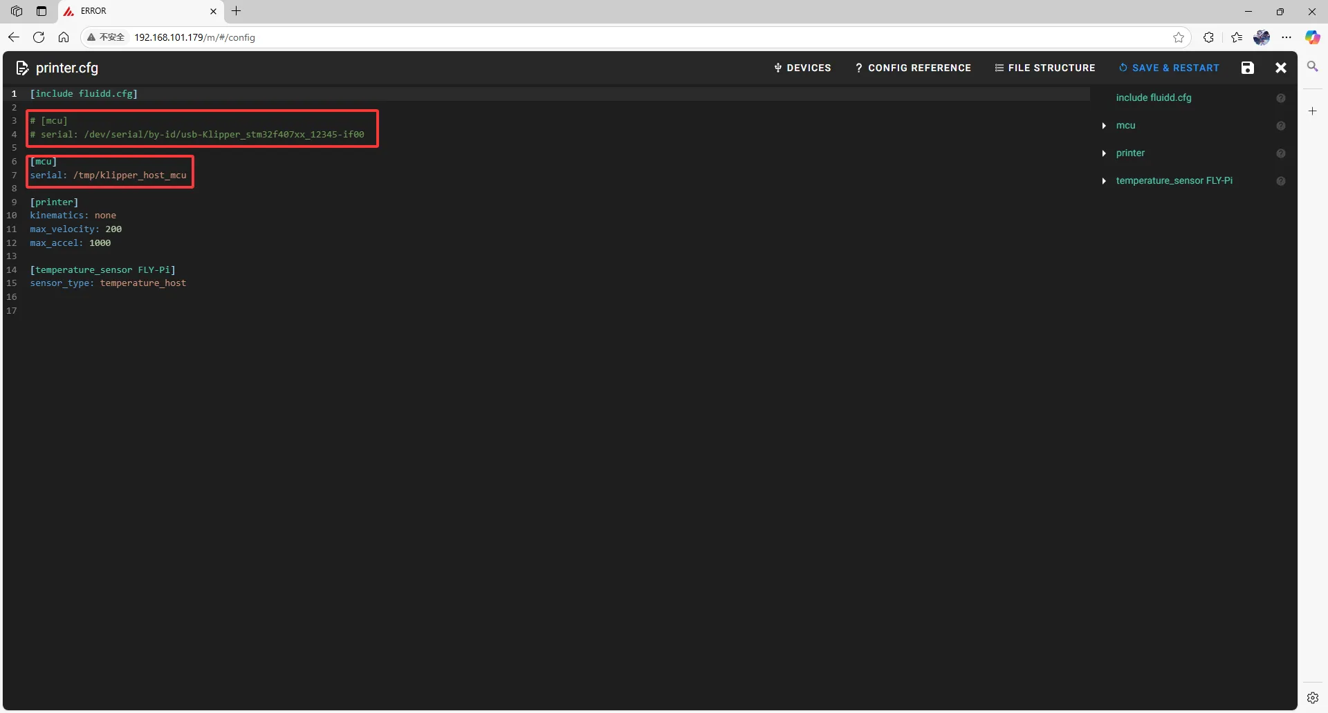 3.点击printer.cfg 进去后,在点击右上方的DEVICES