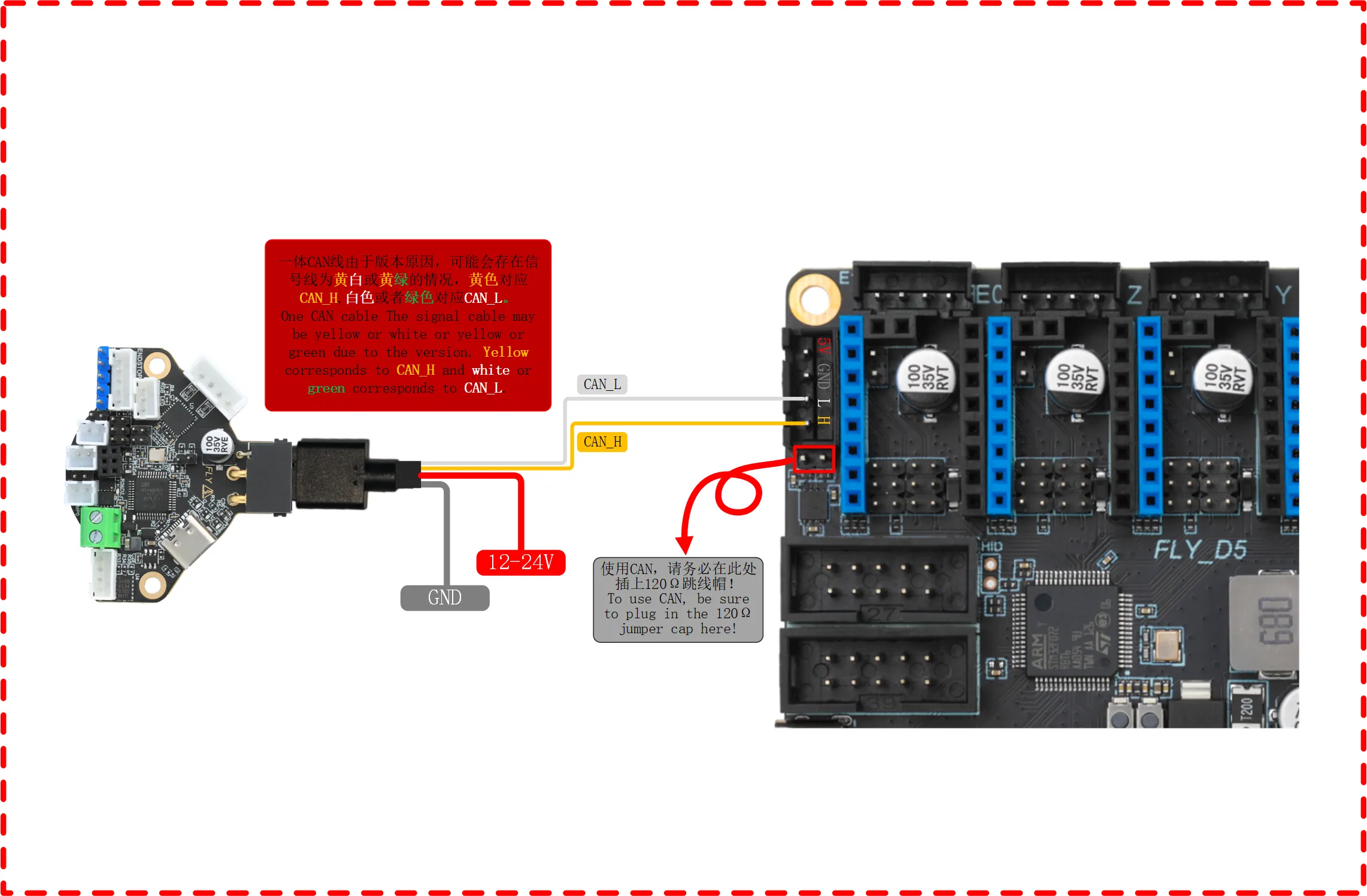 - 请注意工具板电源线不是接到CAN口,是接到12V-24v电源线上