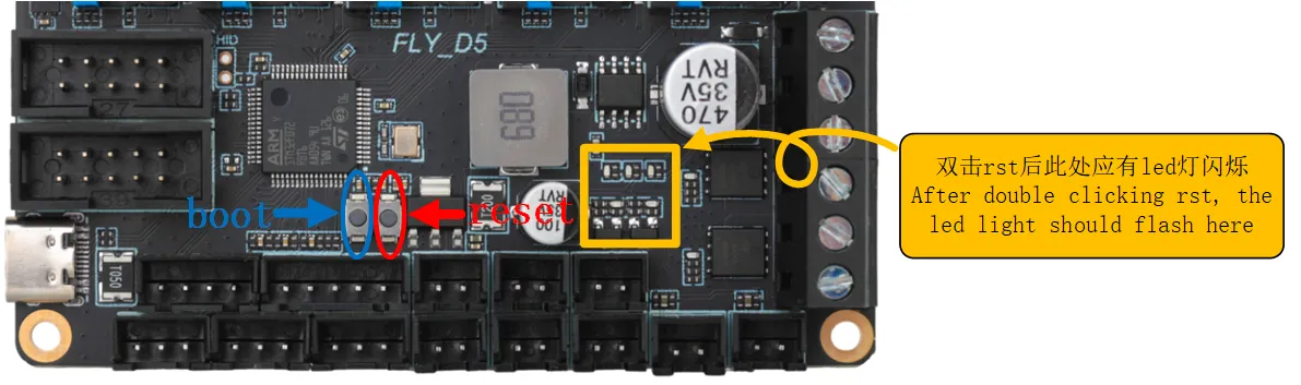 • 如果没有LED灯闪烁,请在烧录完katapult固件后,再执行下一步