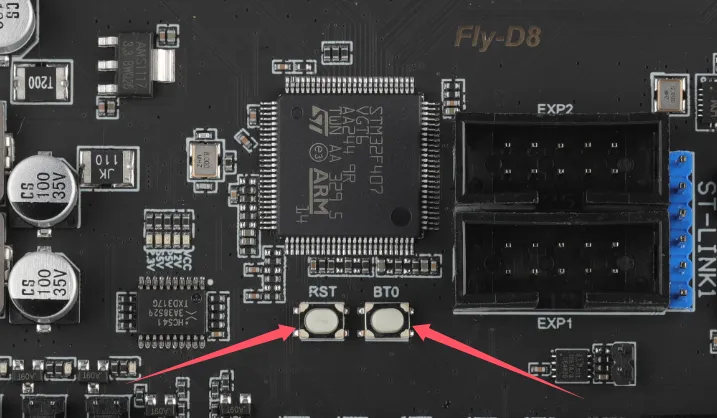 • 优点:快速双击重置(reset)按钮或者快速断电两次即可进入Katapult固件,此时主板上会有LED闪烁