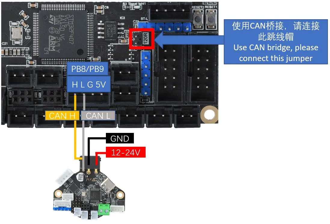 - 请注意工具板电源线不是接到CAN口,是接到12V-24v电源线上