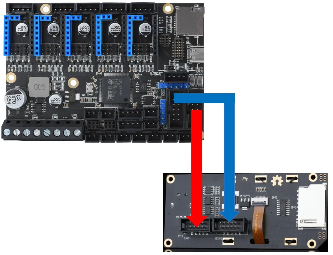 下图为FLY的mini12864的接线方式,其他厂家的屏幕请咨询相应厂家。Mini12864屏幕接接反,接错可能会导致上位机连不上MCU。如果使用mini12864屏幕之前可以正常连上主板的MCU,而使用mini12864后就连不上MCU了,请尝试拔出mini12864的接线!!!