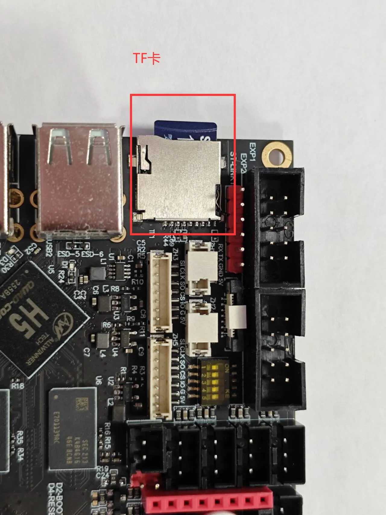 - 在将系统烧录到TF卡后,需要将TF卡接到C8此处,否则系统无法启动