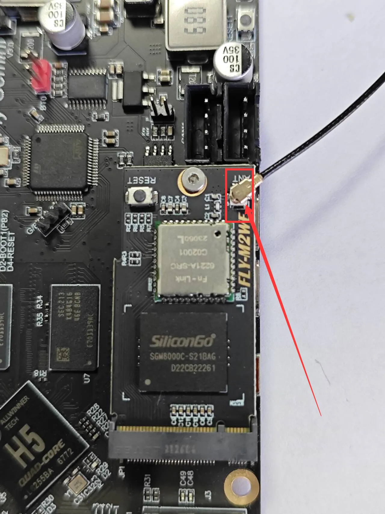 - 红色箭头所指的地方为WIFI天线接口