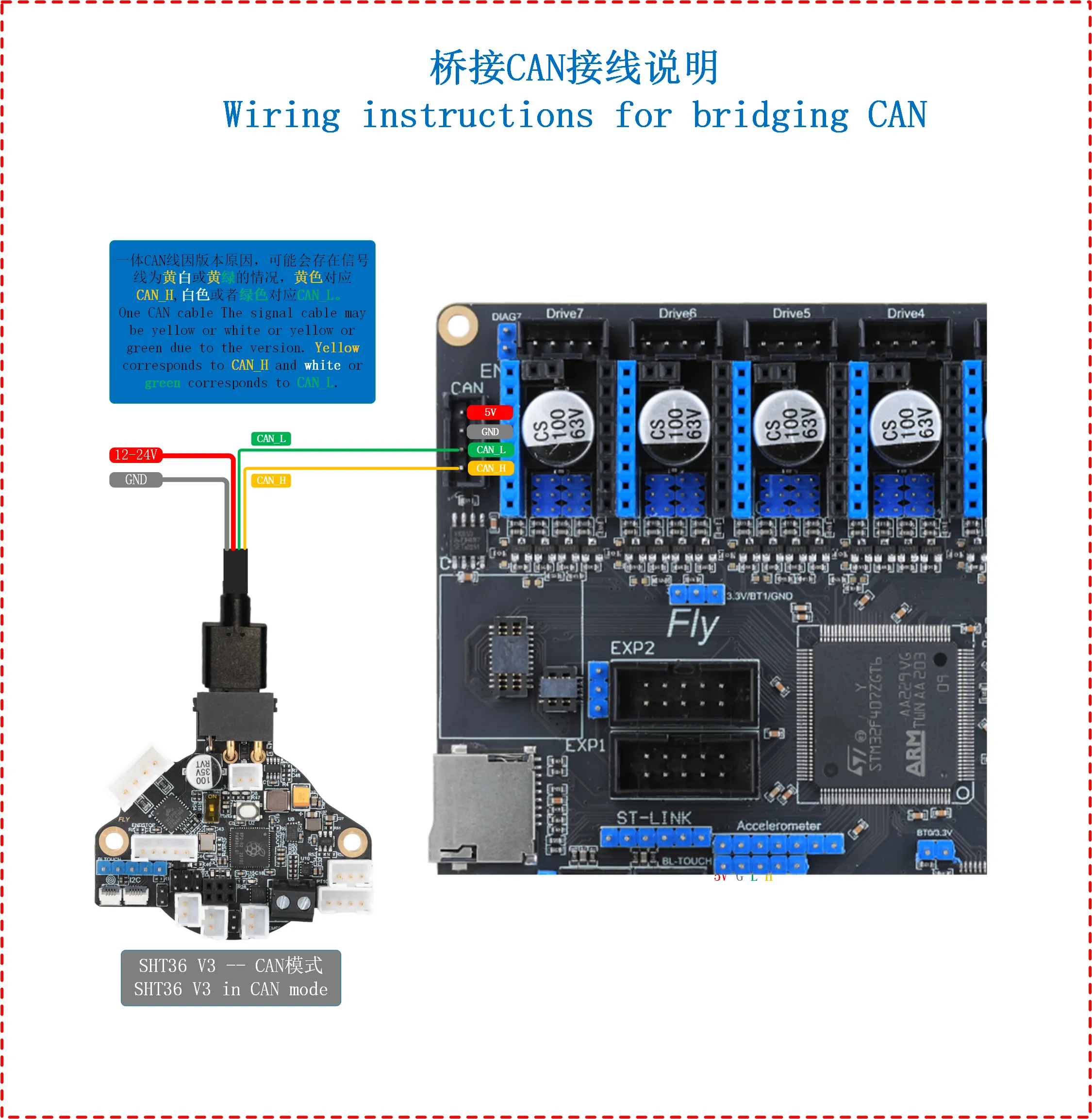 - 请注意工具板电源线不是接到CAN口,是接到12V-24v电源线上