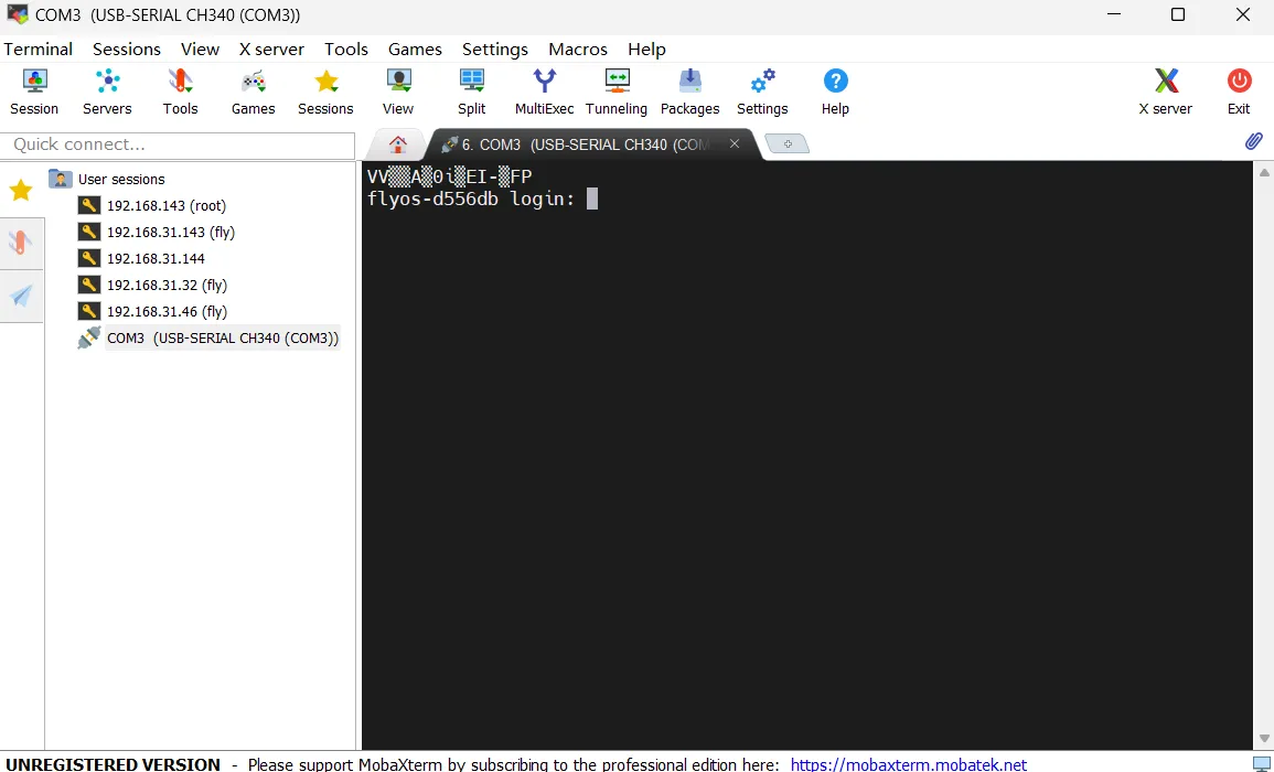 - 因为FLYOS-FAST启动速度较快,所以您大概率看到的的乱码,如下图所示,这是正常现象,请不要担心,按几下回车即可