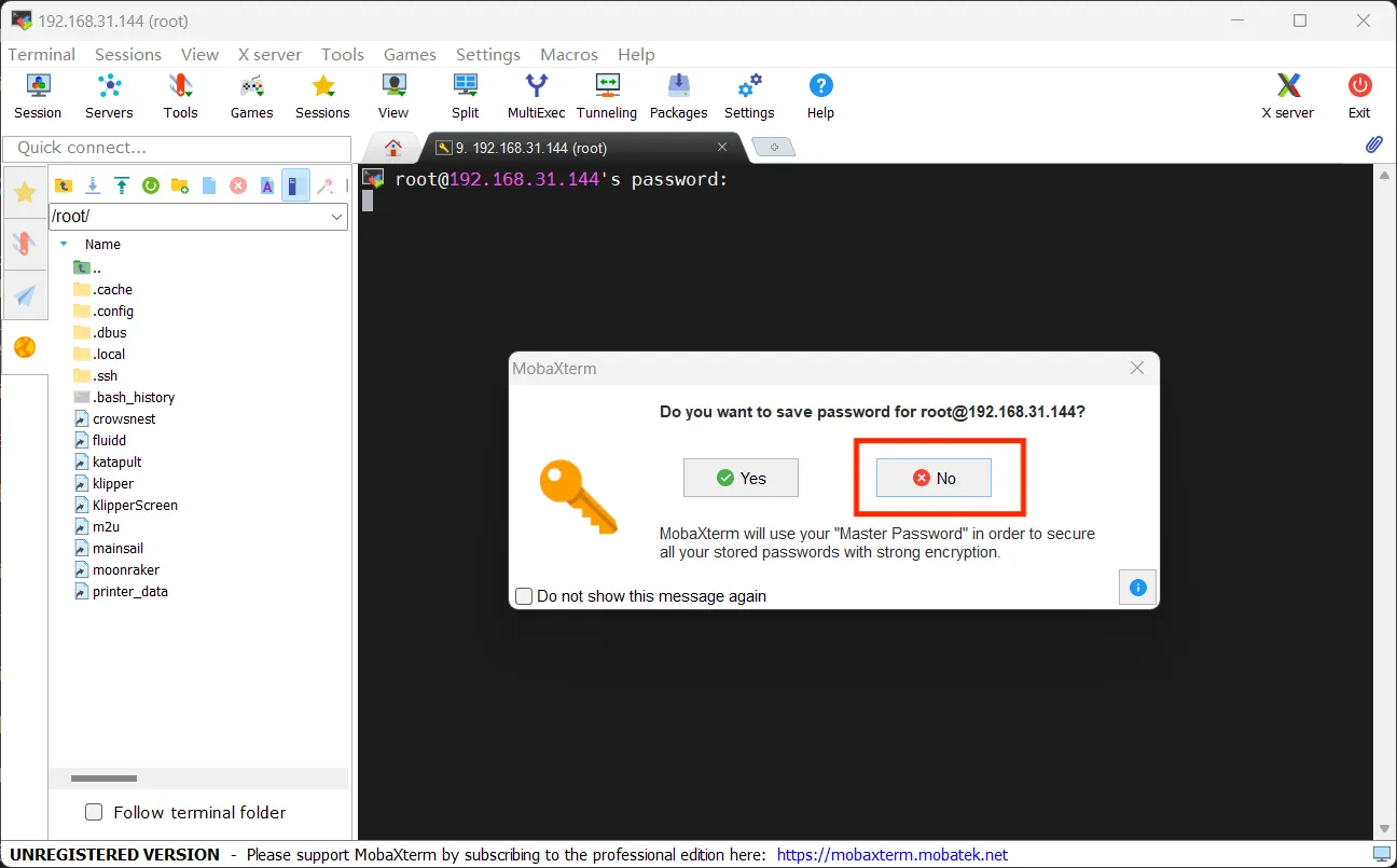 如果弹出下图所示界面,此弹窗提示是否保存用户密码,点击No即可
