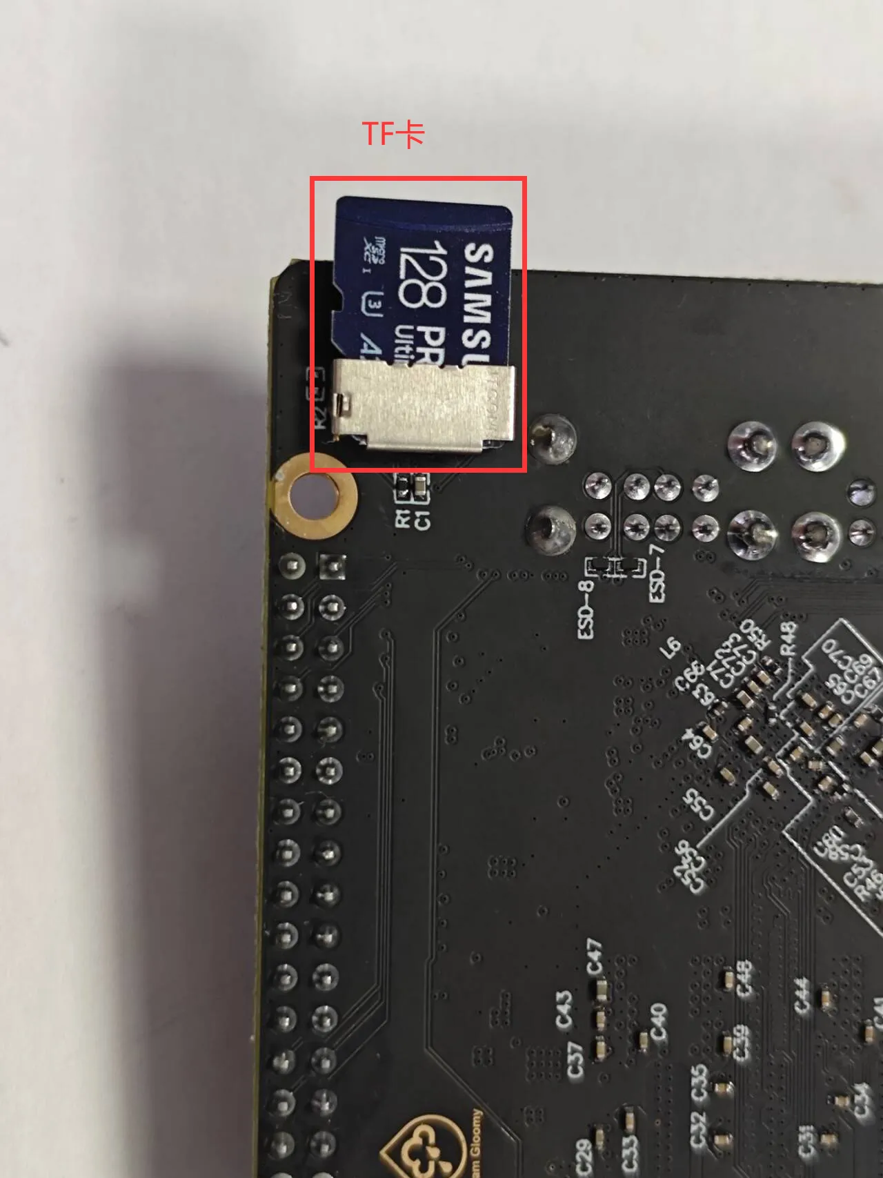 - 在将系统烧录到TF卡后,需要将TF卡接到PI 此处,否则系统无法启动