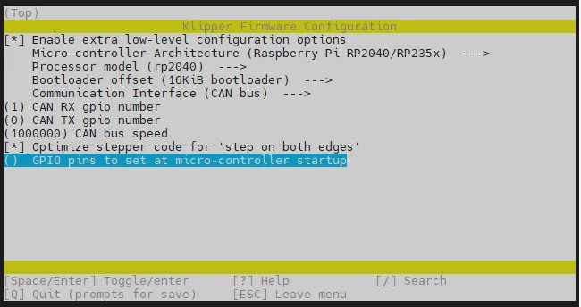 cd ~/klipper && rm -rf ~/klipper/.config && rm -rf ~/klipper/out && make menuconfig