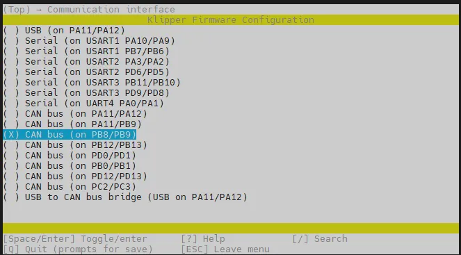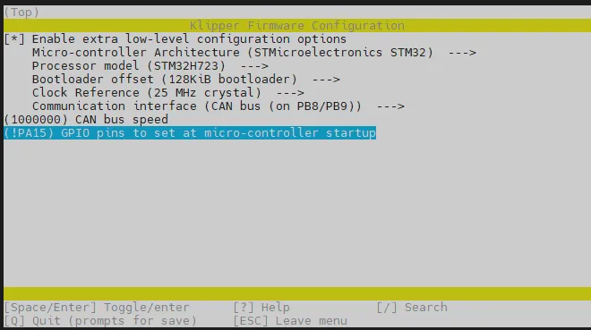 cd ~/klipper && rm -rf ~/klipper/.config && rm -rf ~/klipper/out && make menuconfig