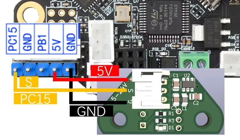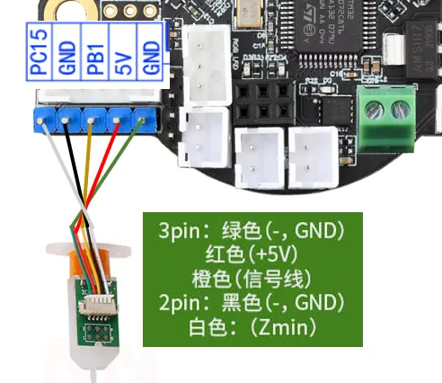 Klicky 为第三方的调平传感器,能够用极低的成本自己在家制作,且性能稳定,性价比最高,推荐使用。接线方法如下图所示。