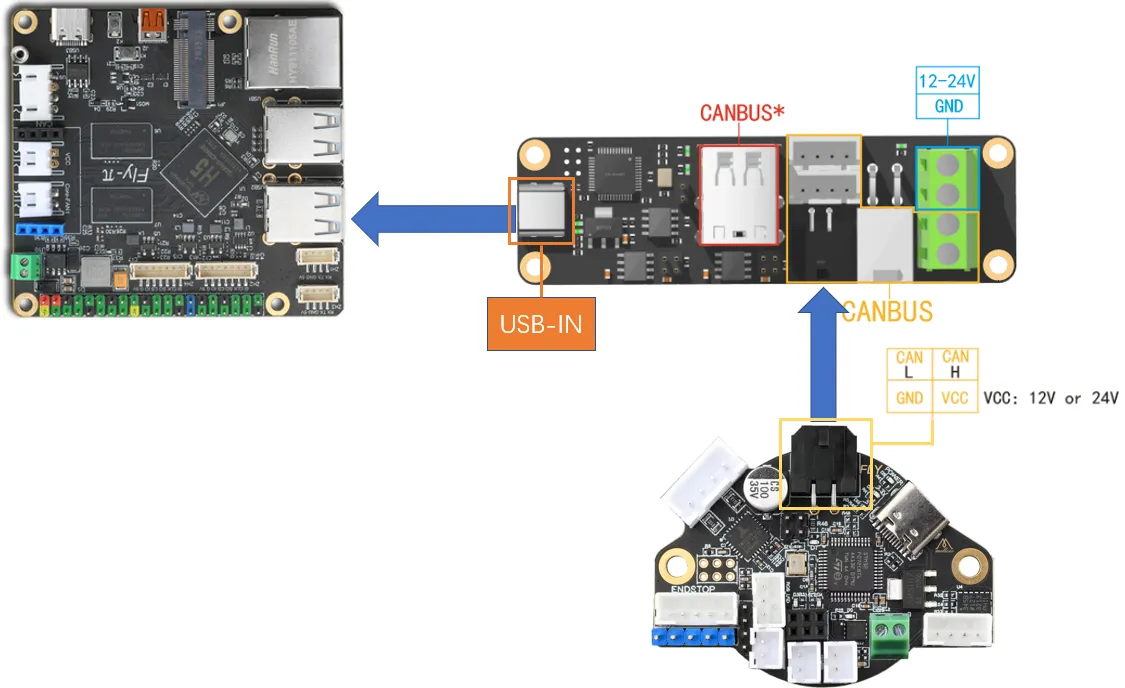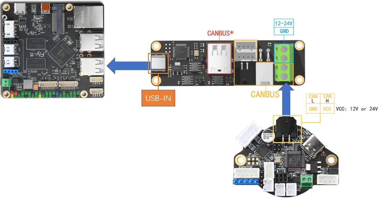 CANBUS*: CAN接口,连接到扩展主板和工具板等(仅限连接到STM32设备的USB接口[PA11,PA12],请注意购买相应版本的UTOC)