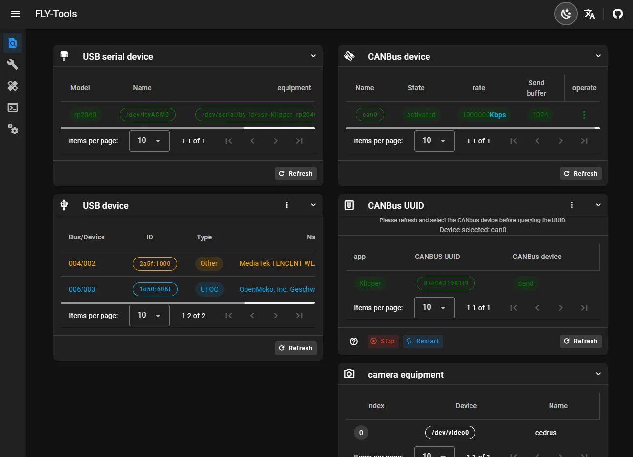 FLY-Tools是广州镁伦电子科技有限公司针对Klipper所定制的一款Web调试工具,不仅适用于Fly上位机(系统自带,无需安装),还兼容市面是大部分安装了Klipper服务的上位机。